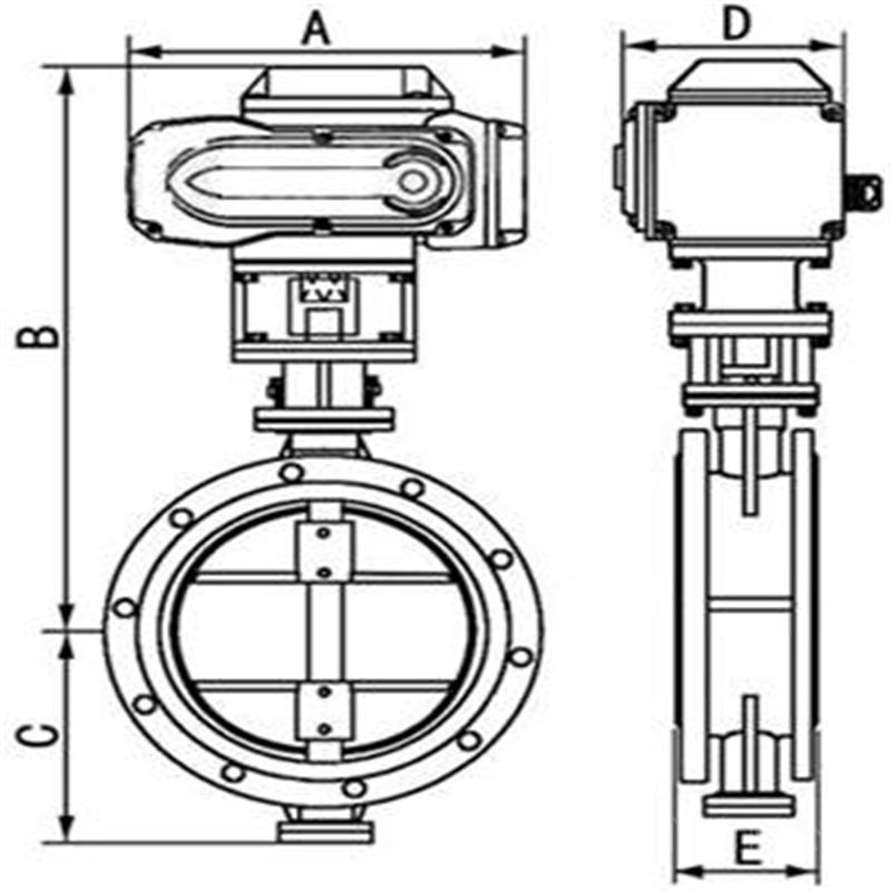 也可选用3810系列或NA系列电子式角行程执行机构.亦可选用PSQ系列或DYR系列。≥DN 200口径阀门一般采用380VAC电动执行器。国内品牌如瑞基,澳托克,扬州电力,天二通,兰陵等;国外品牌有英国罗托克、法国伯纳德、德国瓯玛、德国西博思(西门子)等电动蝶阀操作力矩小,是所有阀类中操作力矩*小的一种,是自动化控制系统中仪表的执行单元,以AC220V、AC380V或DC24V电源电压作动力,接受来自(DCS、PLC)系统或调节仪表、操作器等输入的(4-20mA、0-10mA或1-5VDC)电流信号或电压信号,即可控制运转。以角行程输出的扭矩转动阀轴0~90º,就能完成启闭动作或调节动作。全电子式电动执行机构,采用机电一体化结构,具有机内伺服操作和开度信号位置反馈、位置指示、手动操作等功能,功能强、性能可靠、连线简单、控制精确、体积小、重量轻、流阻小、流量系数大,结构简单、密封性能好。调节范围大,通过输入电流信号或电压信号,将此转变成与输入信号相对应的位移,改变阀板的旋转角度(0-90º任意角度),因此一定的输入信号对应一定的转角,实现比例动作,故有较好的调节控制流量等参数。
