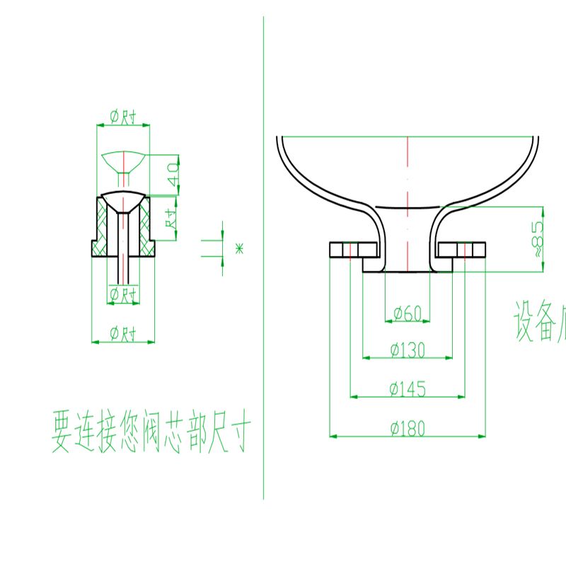 下展式搪玻璃放料阀尺寸表:mm配反应罐 规格 D D1 D2 D3 z-φ d d1 n-φ L L1 50-100L 70/32 160 130 32 160 4-14 120 90 4-14 350 325 200-500L 80/40 185 150 42 160 4-18 130 100 4-14 360 330 1000-2000L 100/50 205 170 50 180 4-18 140 110 4-16 395 360 1000-2000L 100/50 210 185 50 180 6-14 140 110 4-16 395 360 1000-2000L 100/50 210 190 50 180 8-14 140 110 4-16 395 360 3000L 125/80 235 200 65 200 8-18 185 150 4-18 450 400 3000L 125/80 235 210 65 200 10-14 185 150 4-18 450 400 5000L 150/100 260 225 85 200 8-18 205 170 4-18 485 420 配反应罐 规格 D D1 D2 D3 z-φ d d1 n-φ L 50-100L 70/32 160 130 32 160 4-14 120 90 4-14 268 200-500L 80/50 185 150 42 100 4-18 130 100 4-14 275 1000-2000L 100/50 205 170 50 180 4-18 140 110 4-16 315 1000-2000L 100/50 210 185 50 180 6-14 140 110 4-16 315 1000-2000L 100/50 210 190 50 180 8-14 140 110 4-16 315 3000L 125/80 235 200 65 200 8-18 185 150 4-18 365 3000L 125/80 235 210 65 200 10-14 185 150 4-18 365 5000L 150/100 260 225 85 200 8-18 205 170 4-18 505 操作方便,开启自由,运动灵活可靠;阀瓣装配维修简单,密封结构合理,密封圈更换方便实用。 结构:主要由阀体,阀瓣,密封圈,阀杆,支架,阀压盖,手轮,法兰,螺母 ,定位螺钉等零件。它的主要参数有:公称通径DN,放料阀额定流量系数KV,放料阀公称压力和压差,放料阀阀体和阀内组件材料,放料阀流量特性,放料阀适用温度,放料阀电源电压和控制信号,放料阀是否带附件等。