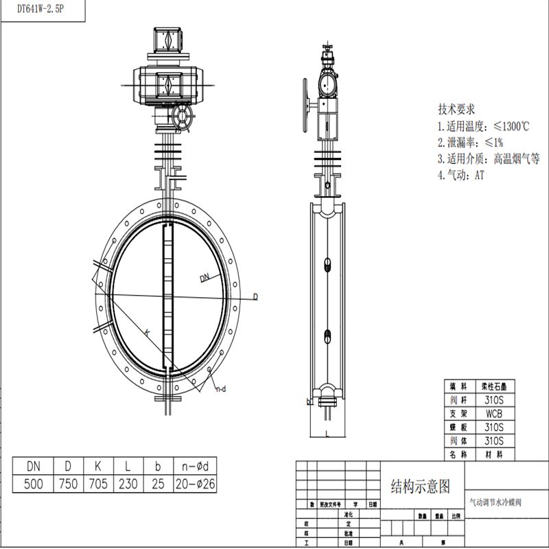 D641X气动法兰式软密封蝶阀选用标准:1、适于制成较大口径的阀门(如DN600 以上);