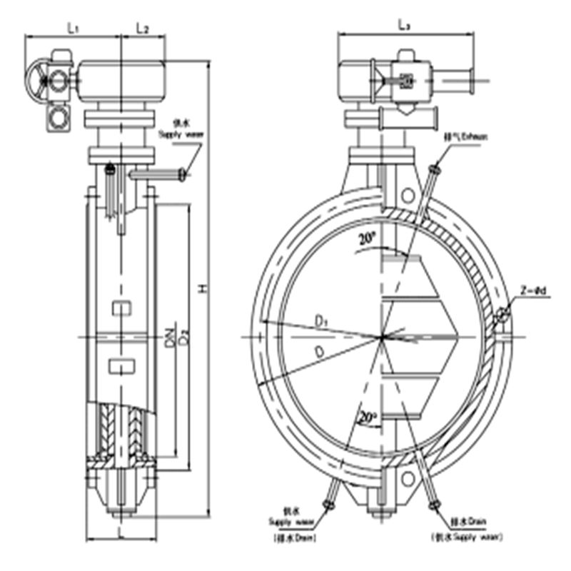 1、本阀采用三偏心密封结构,阀座与蝶板几乎无磨损,具有越观越紧的密封功能。