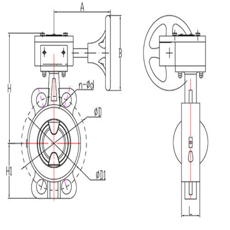 1、本蝶阀结构为中线密封对夹式衬氟蝶阀,阀杆与蝶板融为一体,蝶板旋转90°,即可实现阀门的启闭过程;